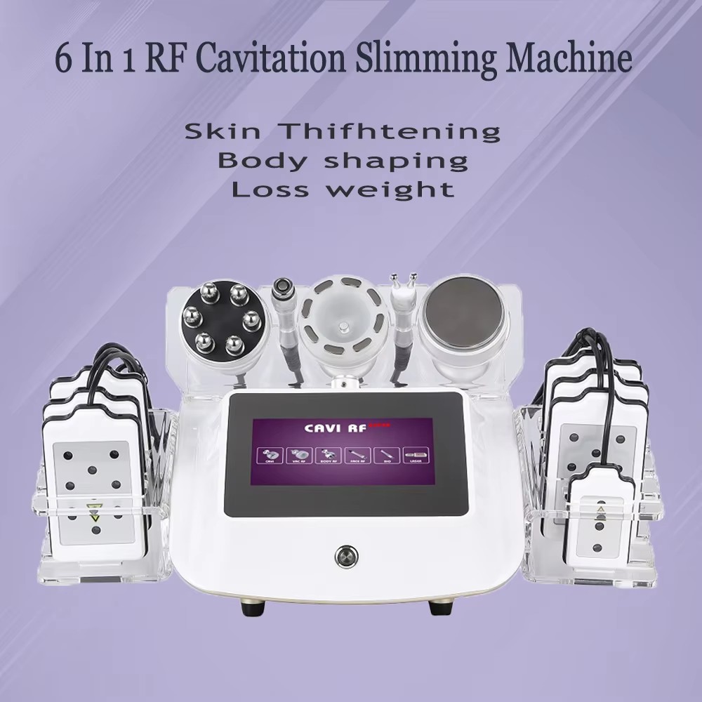 The CAVI RF SUPER 6-in-1 ultrasonic cavitation machine integrates powerful technologies: 40KHz ultrasound, multipolar radio frequency, vacuum RF, and lipo laser pads. Designed for both face and body treatments, it offers a non-invasive, painless and effective way to remove stubborn fat, reduce cellulite, and tighten loose skin.